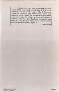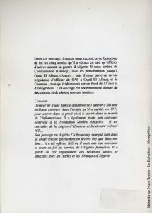 La galerie ci-après, présente une centaines d'ouvrages relatifs à la guerre d'Algérie. Pour chaque ouvrage référencé dans cette liste, on trouvera la photo de la 1ère et la derniere de couverture. Ce qui permet, dans la plupart des cas d'avoir un aperçu plus ou moins précis sur le contenu.